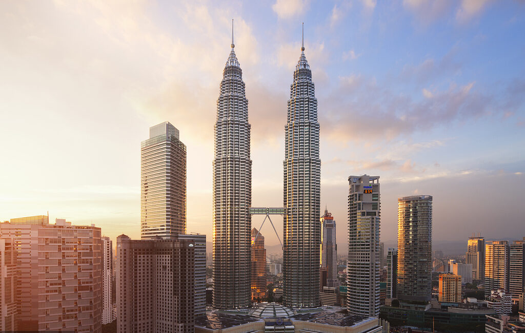吉隆坡石油雙塔位于吉隆坡市中心,高452米,共地上88層,一對一模一樣的大廈并肩聳立,中間棧橋相連,設(shè)計(jì)靈感來自于伊斯蘭教教義。雙子塔是吉隆坡的標(biāo)志性城市景觀之一,是世界上最高的雙子樓和第五高的建筑物,也是著名好萊塢動(dòng)作大片《偷天陷阱》的拍攝場地,片中男女主角肖恩和凱瑟琳從雙子塔逃脫片段,可謂是震驚了世人。